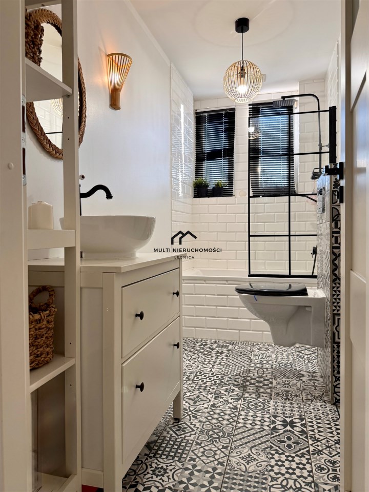 Lokal po solidnym, generalnym remoncie. Mieszkanie w pełni rozkładowe, brak pomieszczeń przechodnich, na podłogach panele i terakota, na ścianach gładzie, okna PCV kolor biały, drzwi wejściowe antywłamaniowe, nowe instalacje: elektryczna oraz wodno-kanalizacyjna. Ogrzewanie podłogowe w kuchni i łazience.